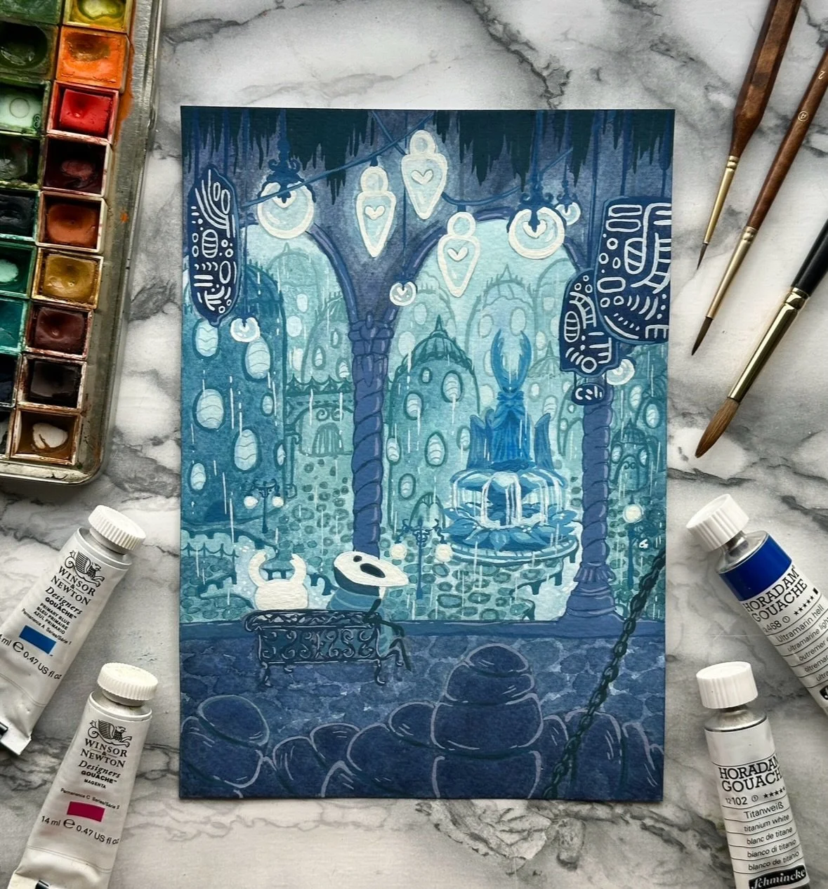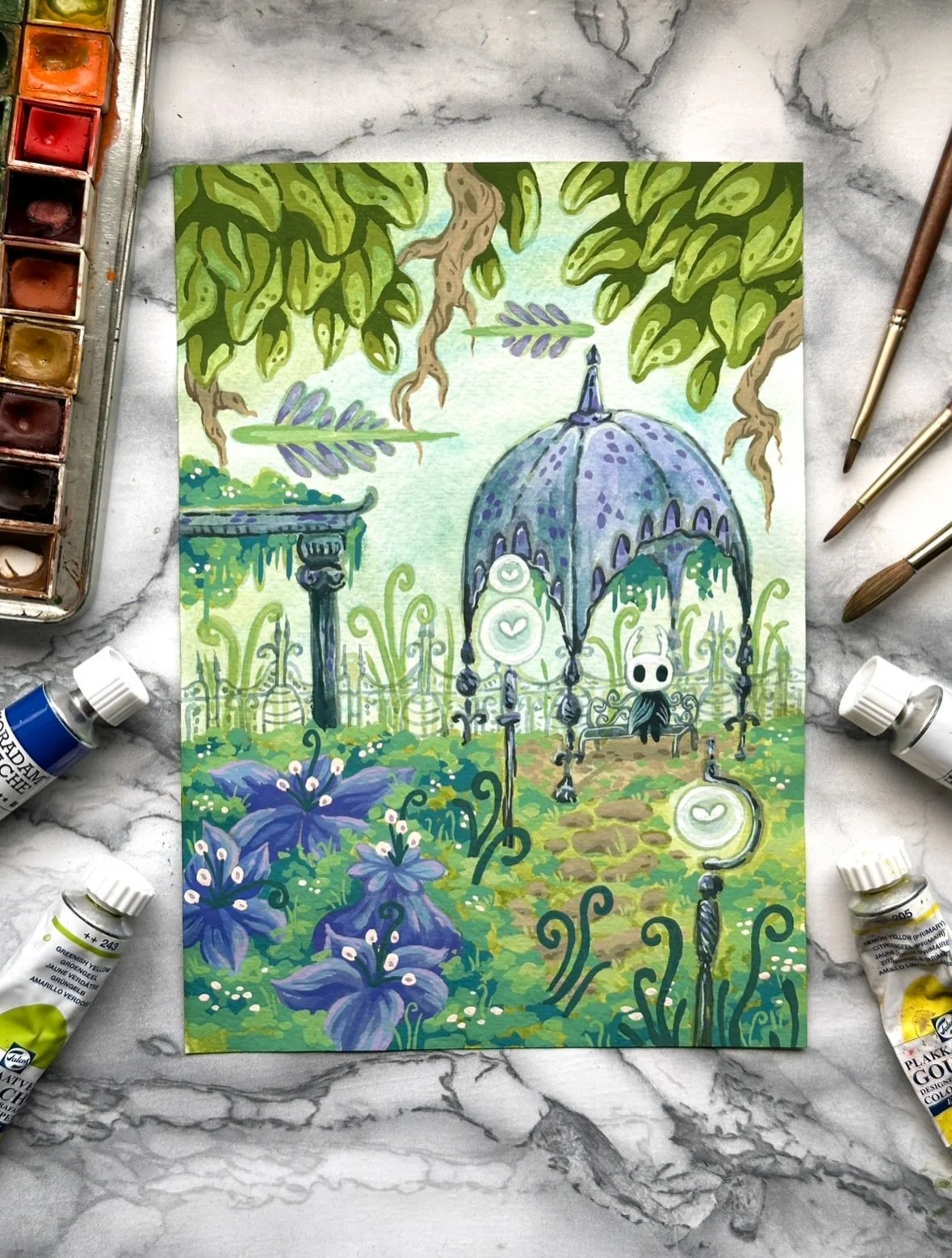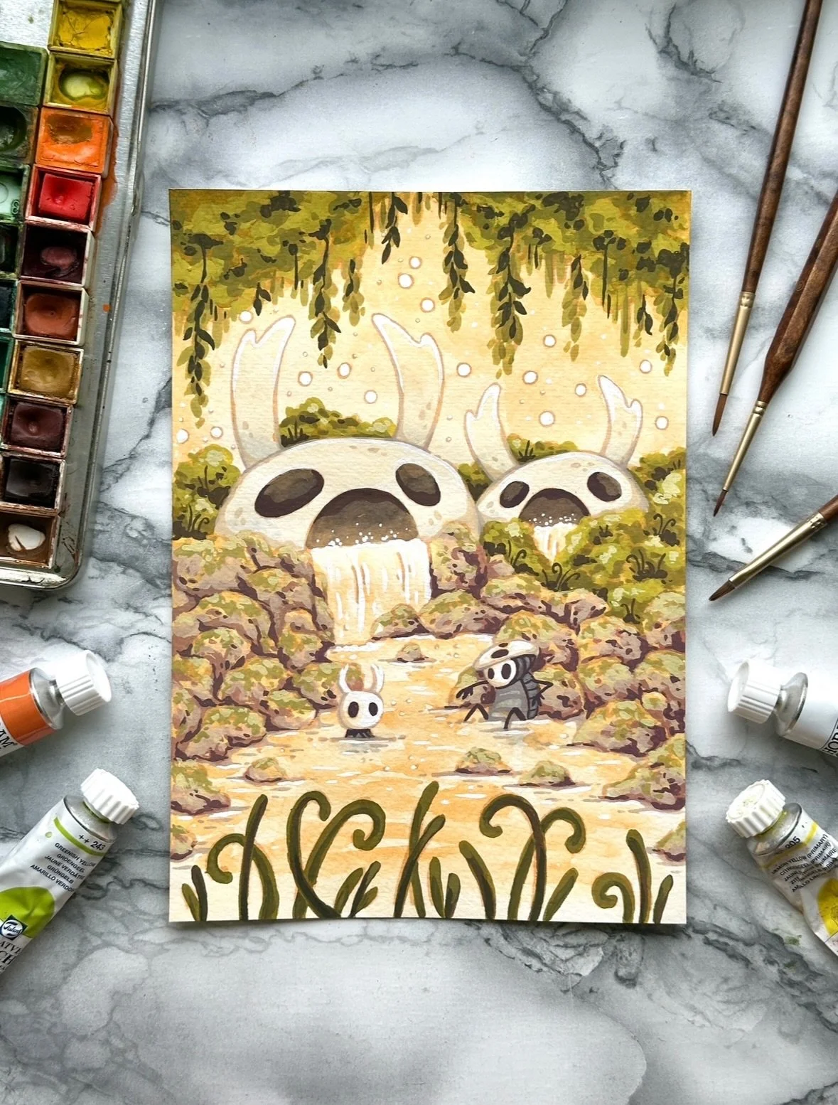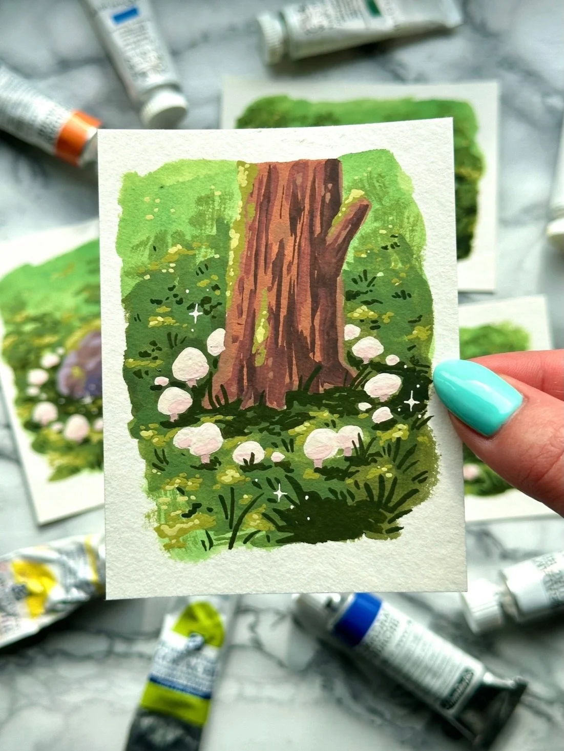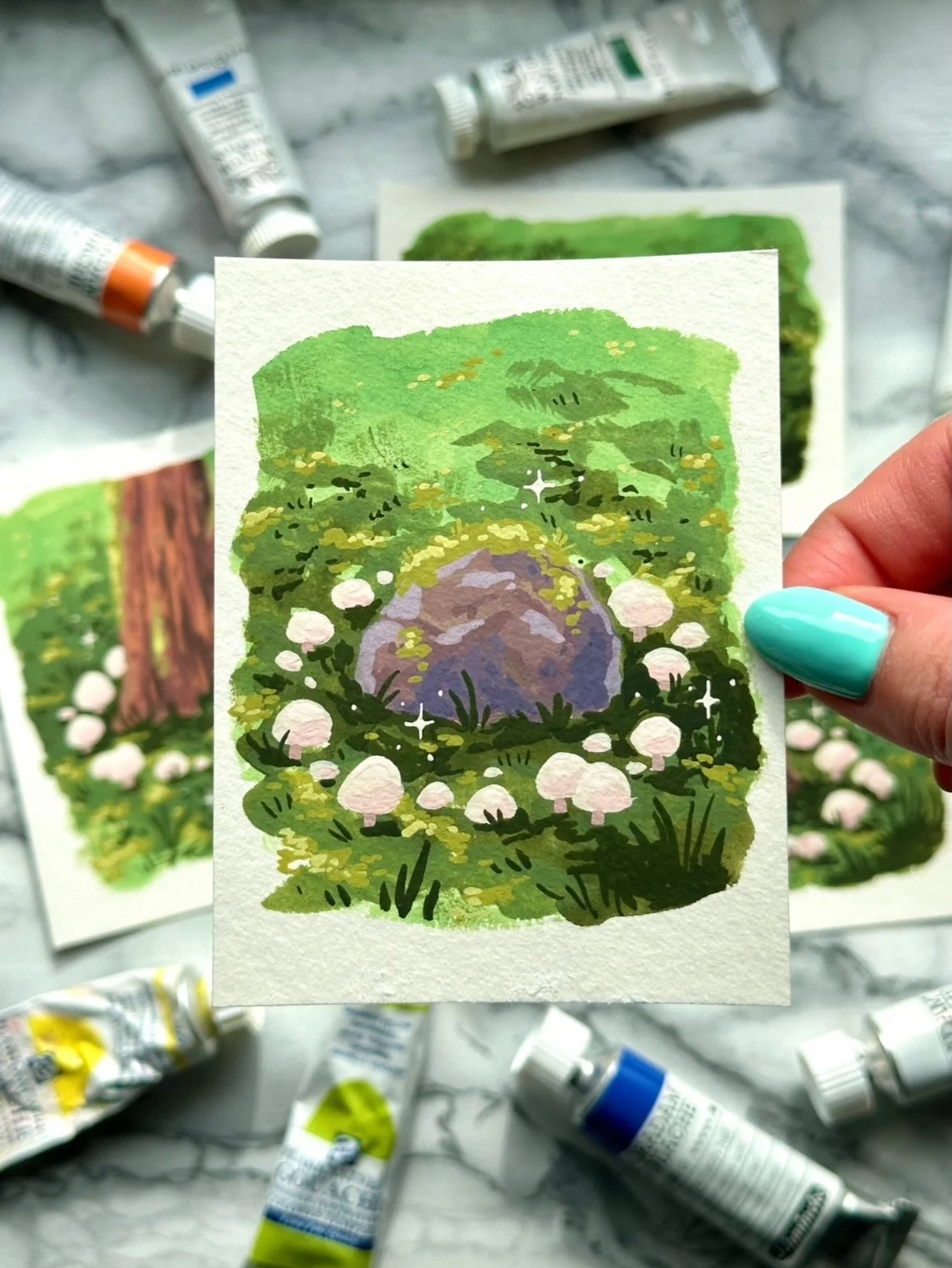 gouache paint, acrylic paint, watercolor paint, acrylic markers, colored pencils, pen and pencil